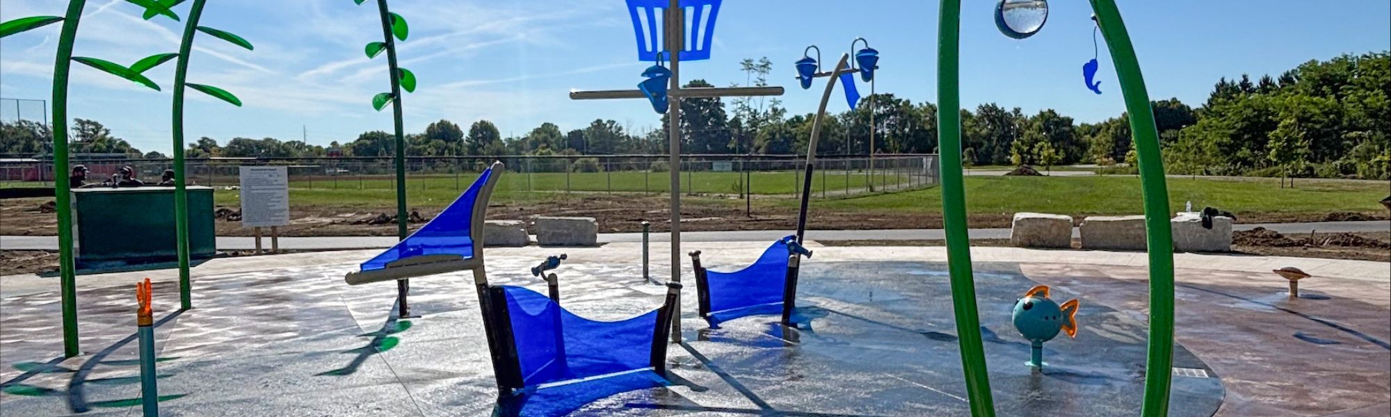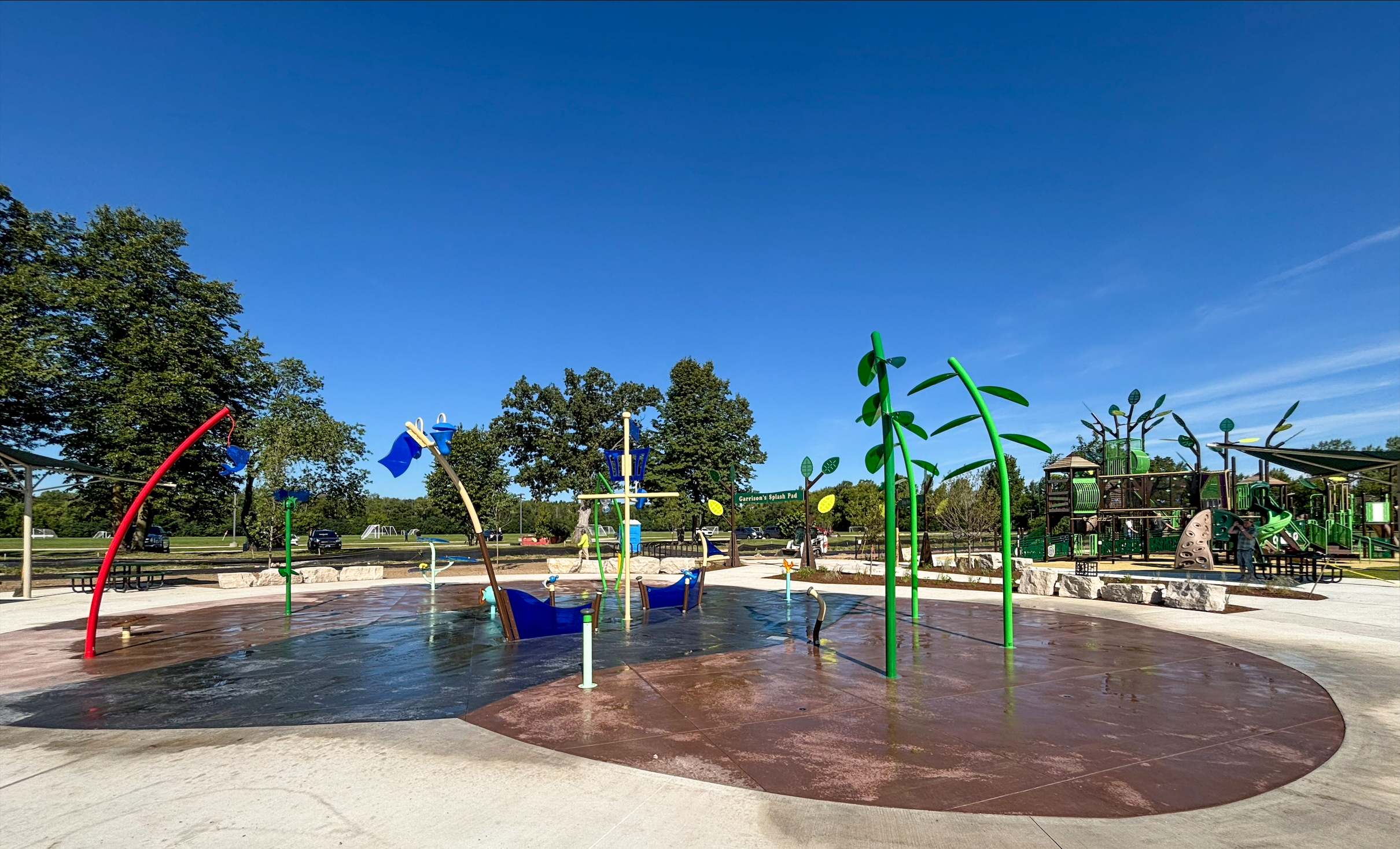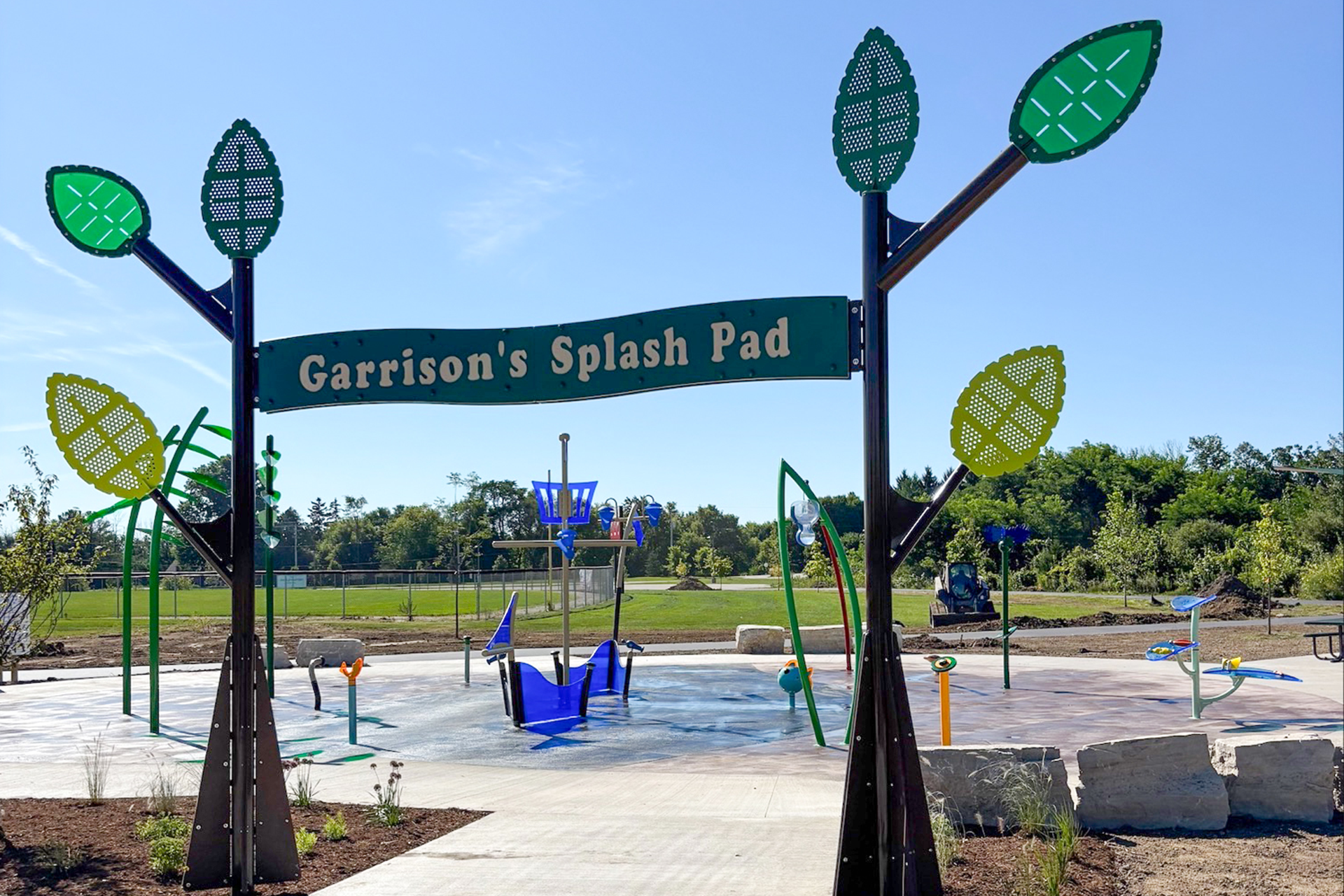 Through careful feature selection and great collaboration between all partners involved in the project, installation of Garrison’s Splash Pad went smoothly and the space was opened to the public in late summer 2025. The City of Pewaukee attended the commissioning of the splash pad and were thrilled with the outcome. Beautiful nature theming and a diverse array of features created a splashy play space that compliments the playground next-door and provides families with a great place to have fun and stay cool during the hot summer months.