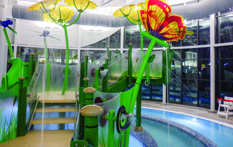 A sight to behold and bringing play to new heights, the beauty and wonder of nature comes indoors by way of this stunning multi-level Activity Tower. Installed overtop of a flowing lazy river, exciting elevations, spacious non-slip decks, fun slides, and multiple interactive play opportunities abound for children of all ages and play styles.
